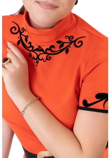 Bluza scarlet grace din jerse cu gat si broderie