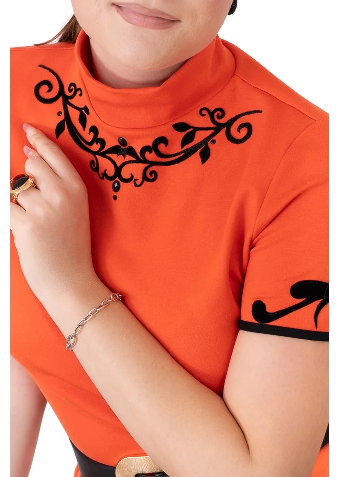 Bluza Scarlet Grace din Jerse cu Guler și Broderie