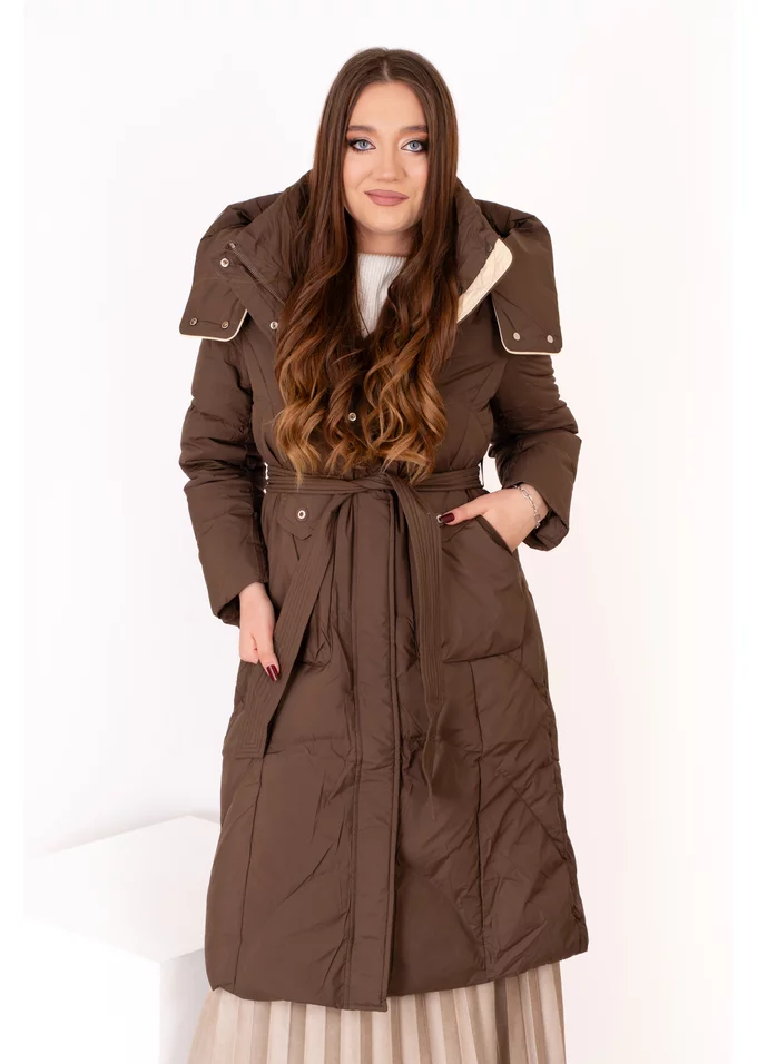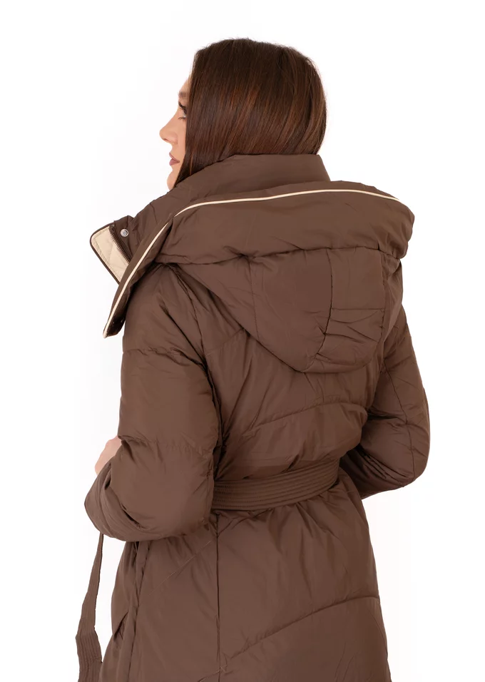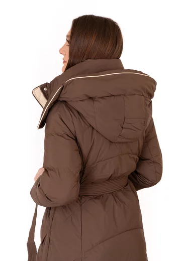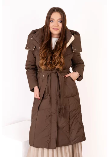 Geaca lunga maro inchis din fas cu gluga
