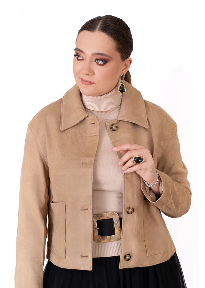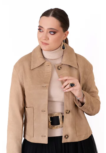 Haina bej din piele cu buzunare