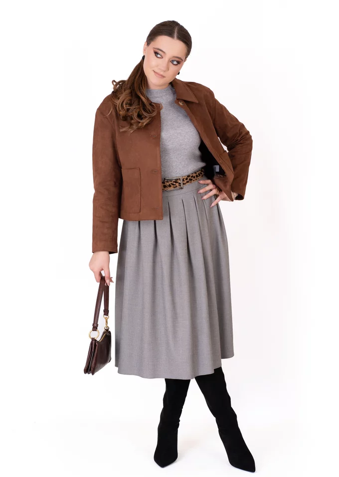 Haina din piele ecologică este o piesă versatilă, ce adaugă un plus de stil ținutelor de zi. Croiul modern și materialul cu aspect elegant o fac potrivită atât pentru outfituri casual, cât și pentru apariții urbane rafinate. Buzunarele funcționale completează designul, oferind un echilibru perfect între estetică și utilitate.