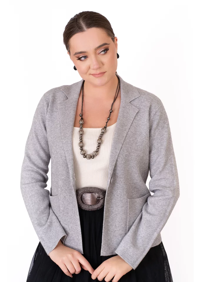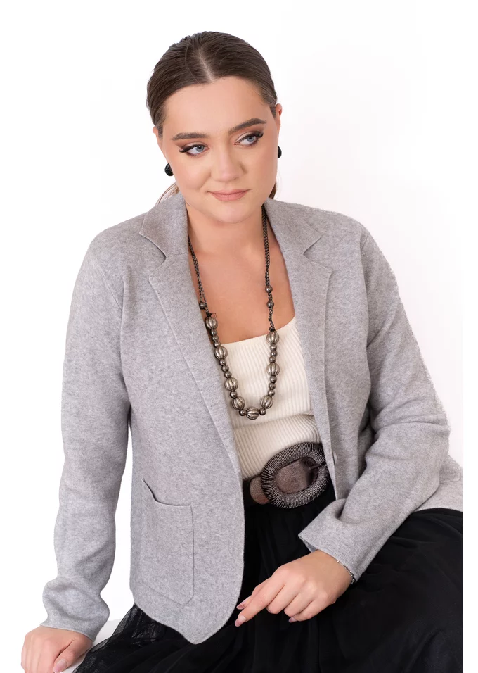 Jerseu elegant, tricotat fin, cu design clasic și rafinat. O piesă versatilă, ideală pentru a completa ținutele de zi sau de birou, oferind confort și stil.
