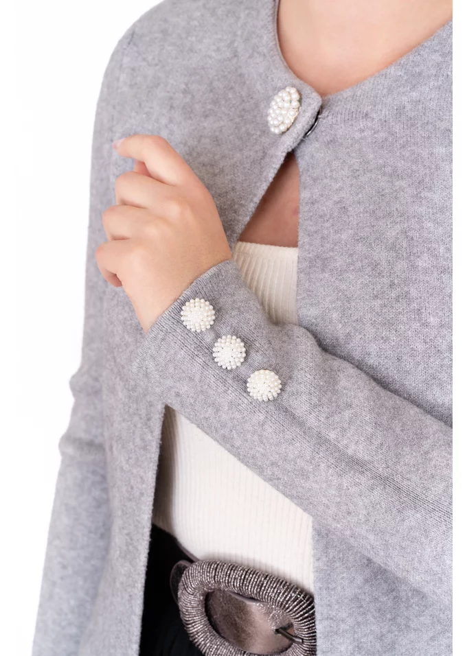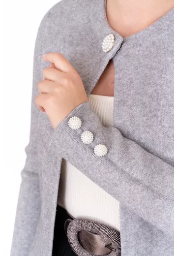 Jerseu elegant tricotat gri accesorizat cu nasturi bijuterie