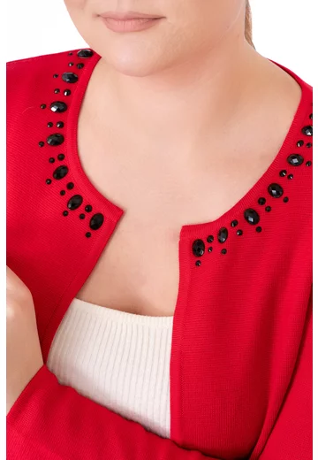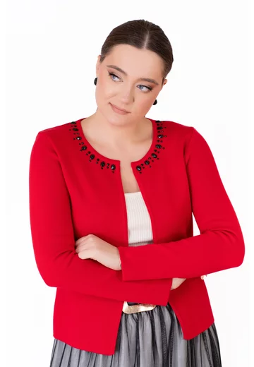 Jerseu tricotat rosu decorat cu strasuri