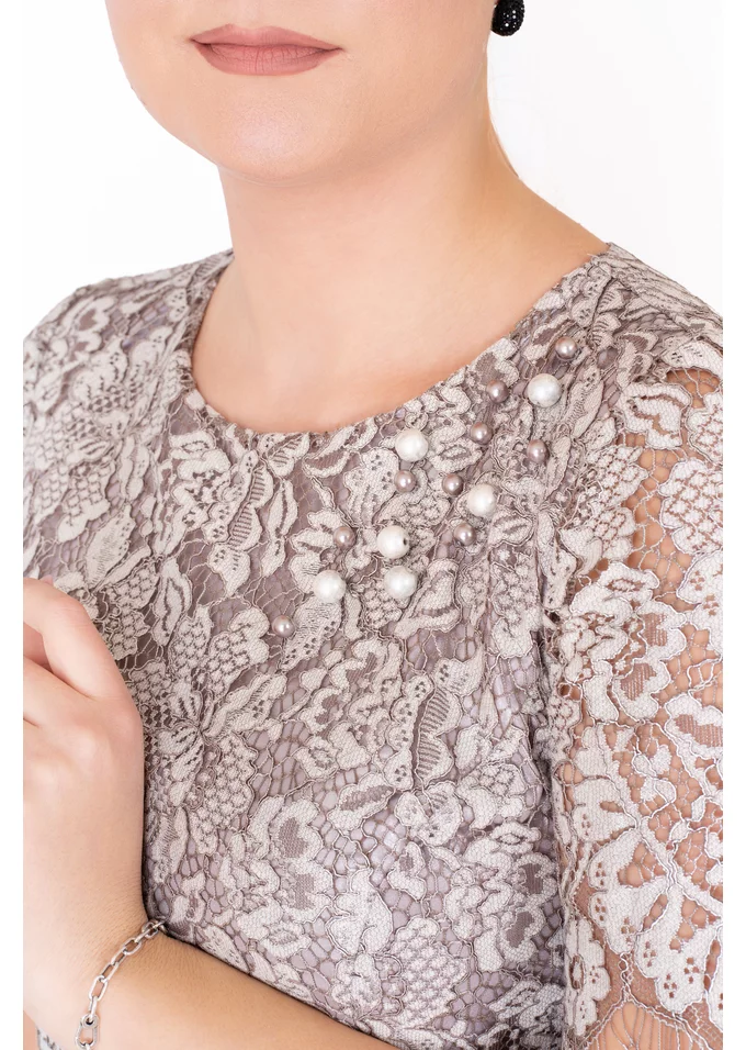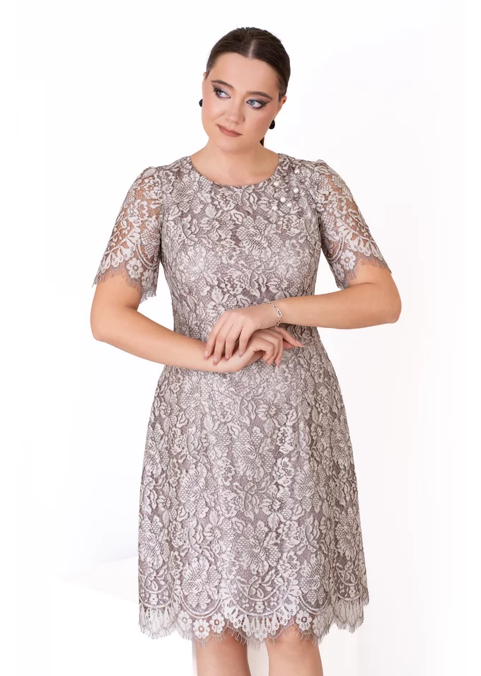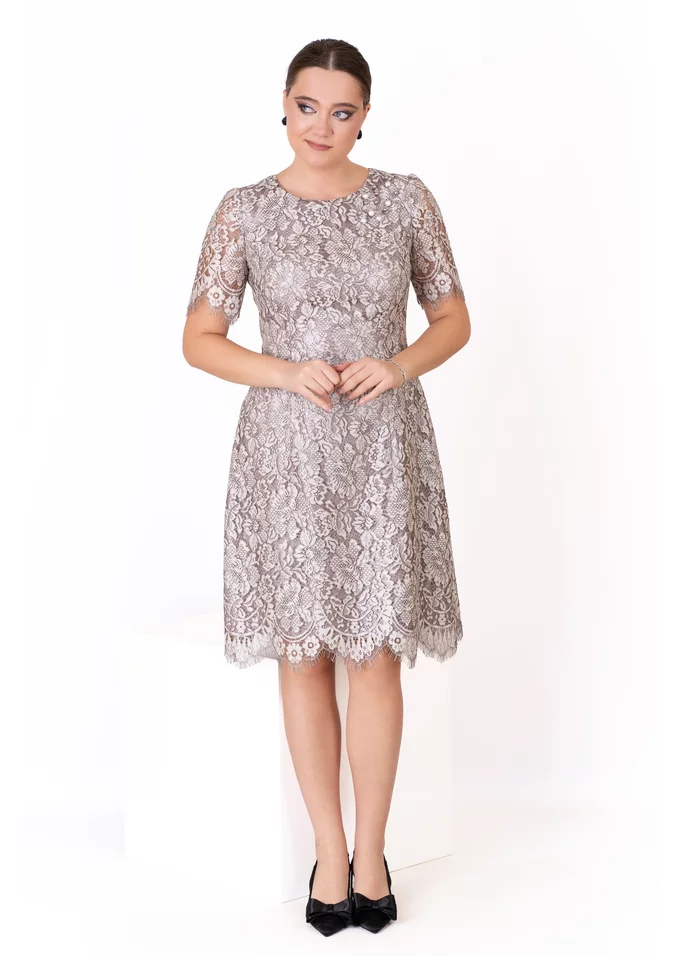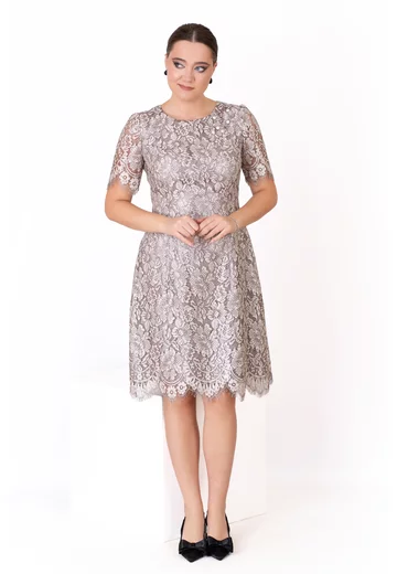 Rochie cocktail celestial grace din dantela peliculizata gri argintiu