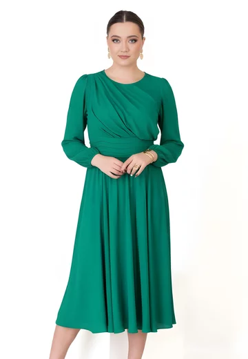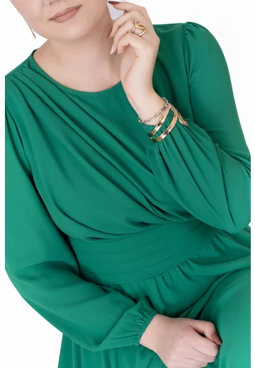 Rochie Elegantă Verde Jad Decorată cu Volane