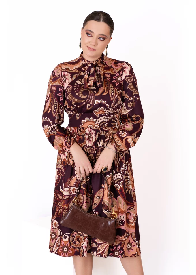 Rochie eleganta vintage paisley din vascoza imprimata