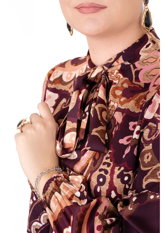 Rochia elegantă Vintage Paisley din vâscoză imprimată se remarcă prin croiul fluid și imprimeul rafinat. O piesă feminină și versatilă, perfectă pentru apariții cu aer boem și elegant.