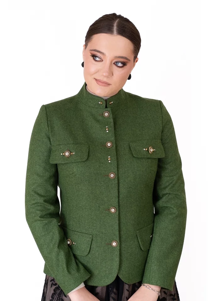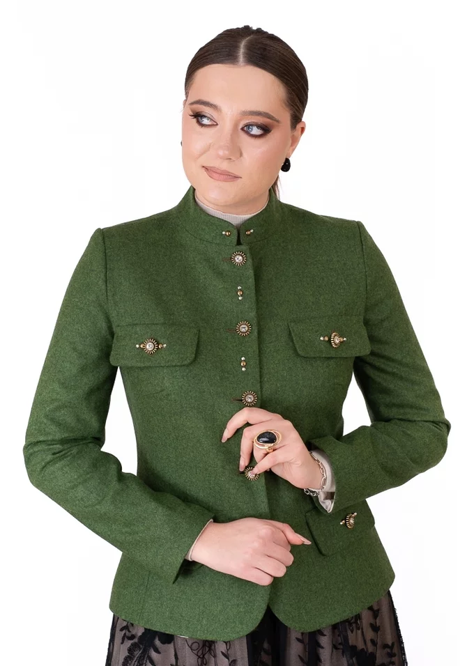 Sacou Ethereal Green din stofă de lână – elegant cu nasturi bijuterie